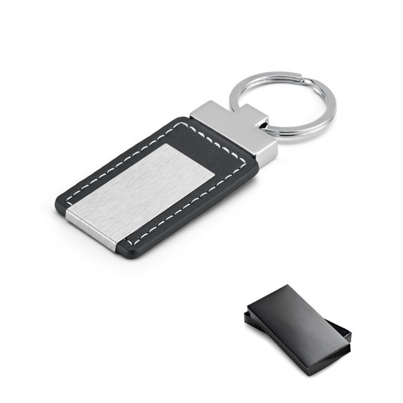 Chaveiro em couro sintético e metal fornecido em caixa presente