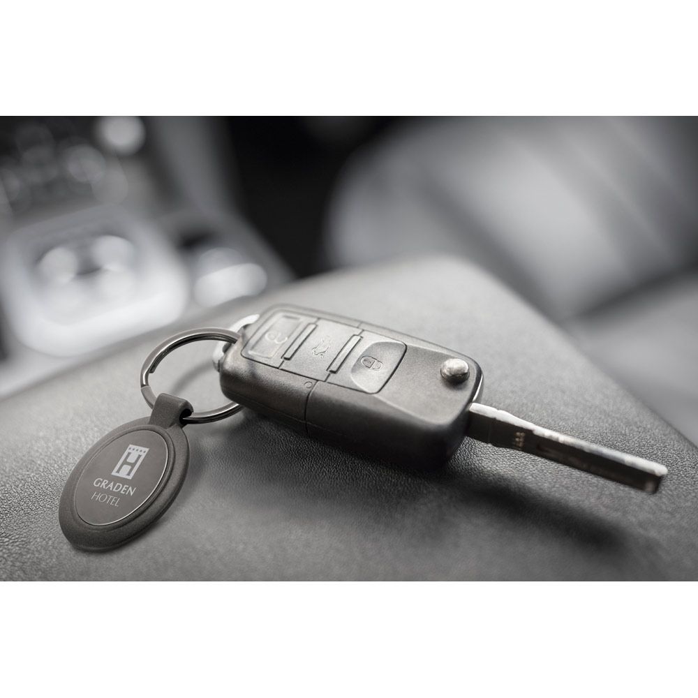 Chaveiro em metal. Fornecido em caixa presente. 32 x 53 x 4,5 mm