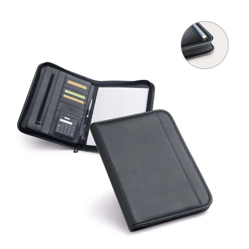 Pasta A4 em linho sintético e couro sintético com placa metálica