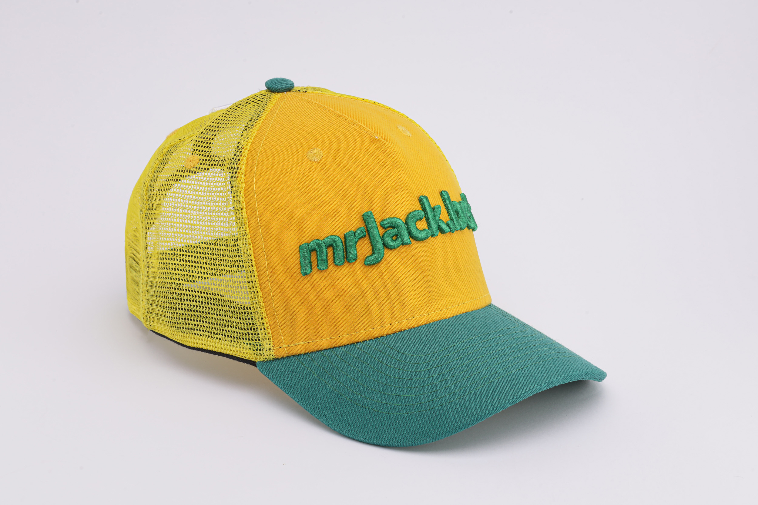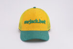 Boné aba curva com tela e regulagem amarelo e verde