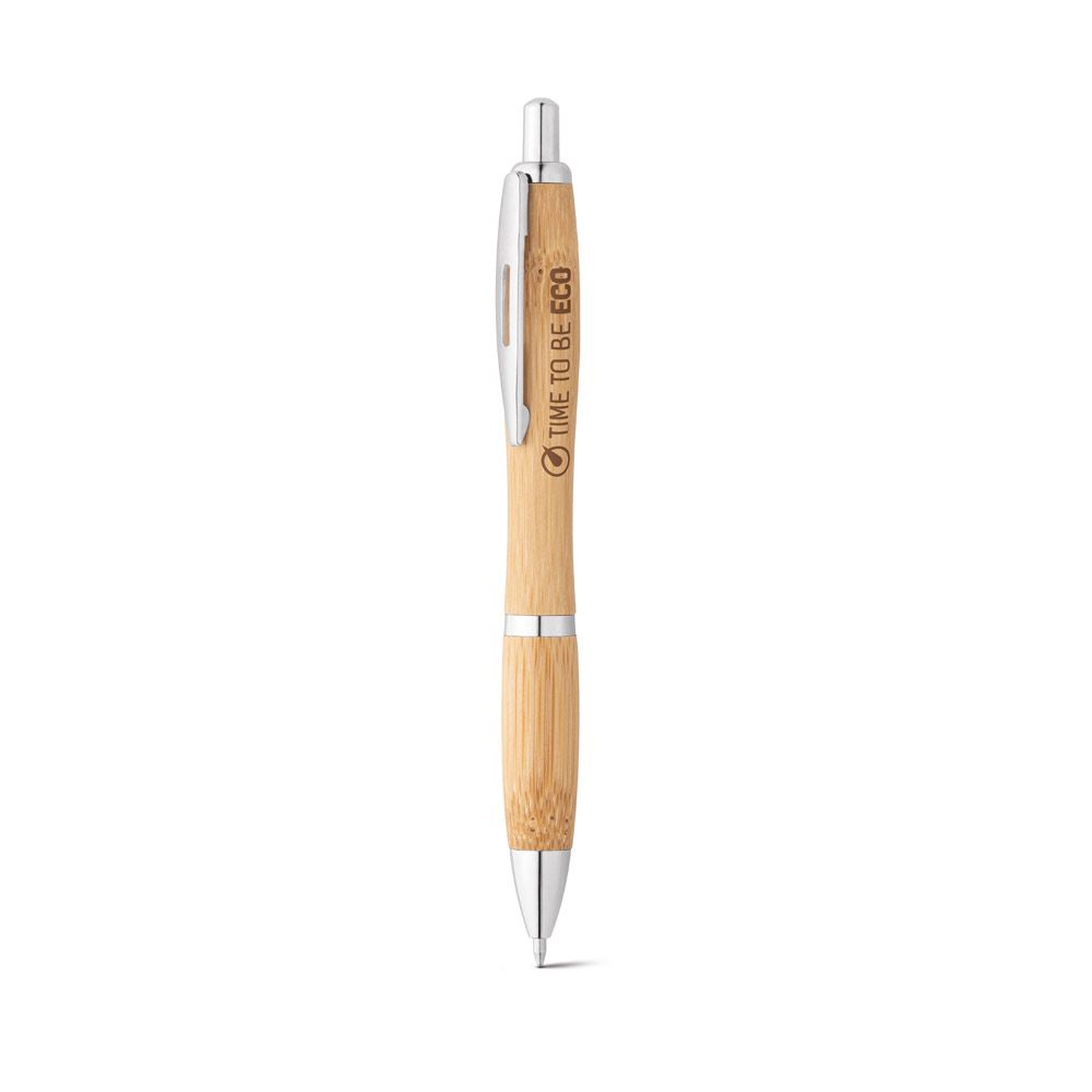 Esferográfica em bambu com clipe. Até 1,5 km de escrita. ø13 x 143 mm