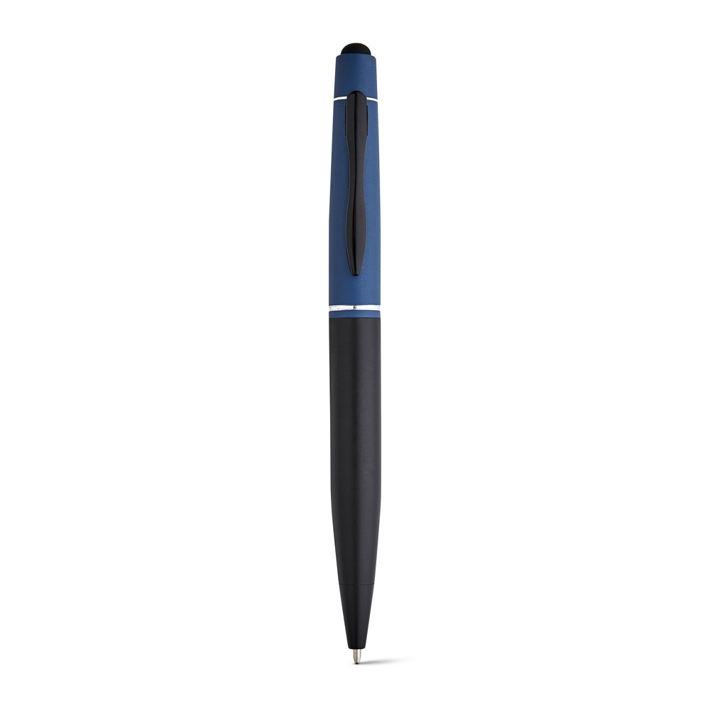 Esferográfica em alumínio com mecanismo twist e ponteira touch. Escrita a azul. Fornecida com bolsa em cartão. 0