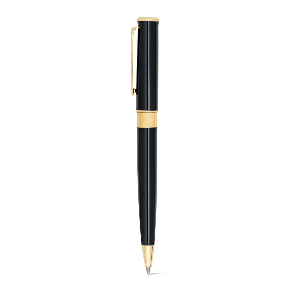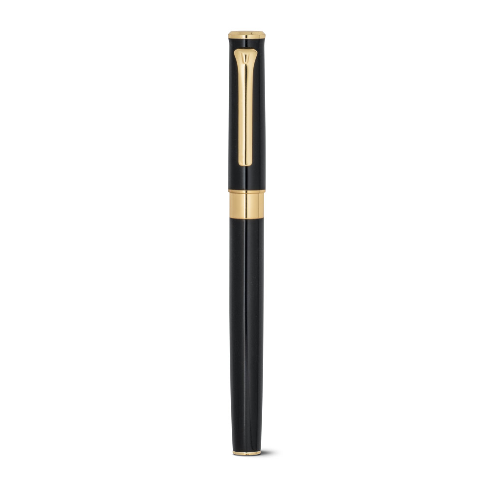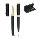 Conjunto de roller e esferográfica em metal. Elementos com banho de ouro de 18 quilates. Fornecido em estojo almofadado. ø12 x 136 mm | Estojo: 185 x 75 x 31 mm
