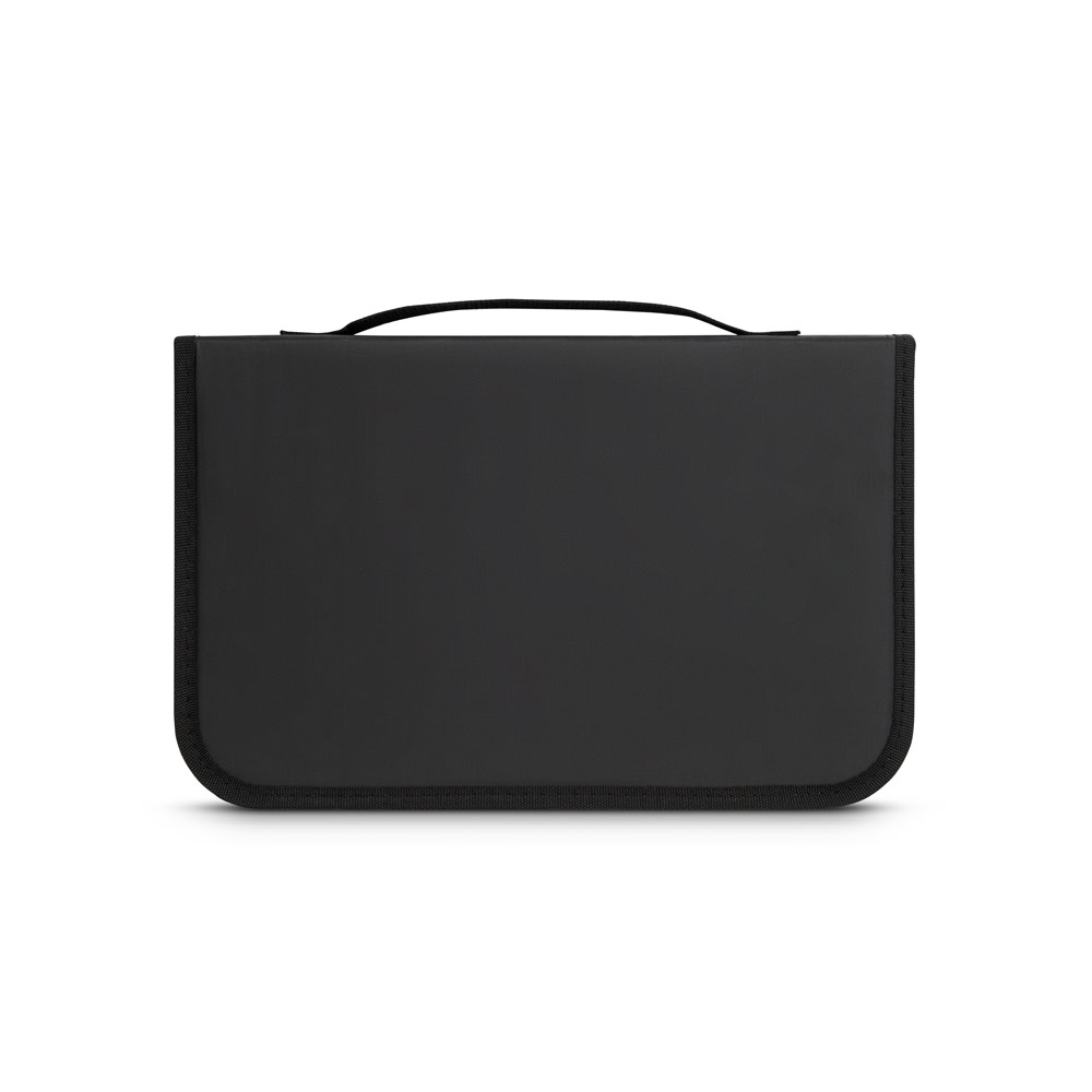 Kit churrasco em estojo de 210D. Composto por tábua em bambu e 3 utensílios em aço inox