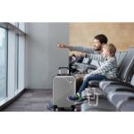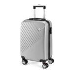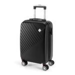 Mala de viagem executivo em ABS com interior forrado, com divisória. Fecho de segurança com senha na lateral, 4 rodas duplas giratórias, pega extensível em metal, com mola (altura pega estendida até 520 mm) e placa metálica removível, para fácil gravação. A mala tem capacidade até 37 L e peso de 2,50 kg. 355 x 555 x 225 mm | Placa: 29 x 29 mm
