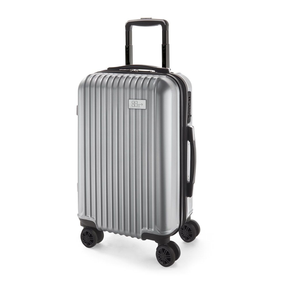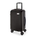 Mala de viagem executivo em ABS e PET com interior forrado, com divisória. Fecho de segurança com senha na lateral, 4 rodas duplas giratórias, pega extensível em alumínio, com mola (altura pega estendida até 530 mm) e placa metálica removível, para fácil gravação. Mala com capacidade até 33 L e peso de 2,70 kg. 335 x 540 x 225 mm | Placa: 60 x 30 mm