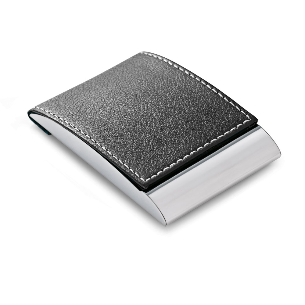 Porta cartões em metal e couro sintético